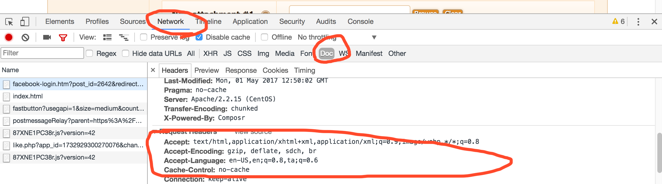 I took a very quick screenshot to show where that is in Google Chrome (but I'm not logged in with Facebook, so don't expect to actually see any error or header in this screenshot).