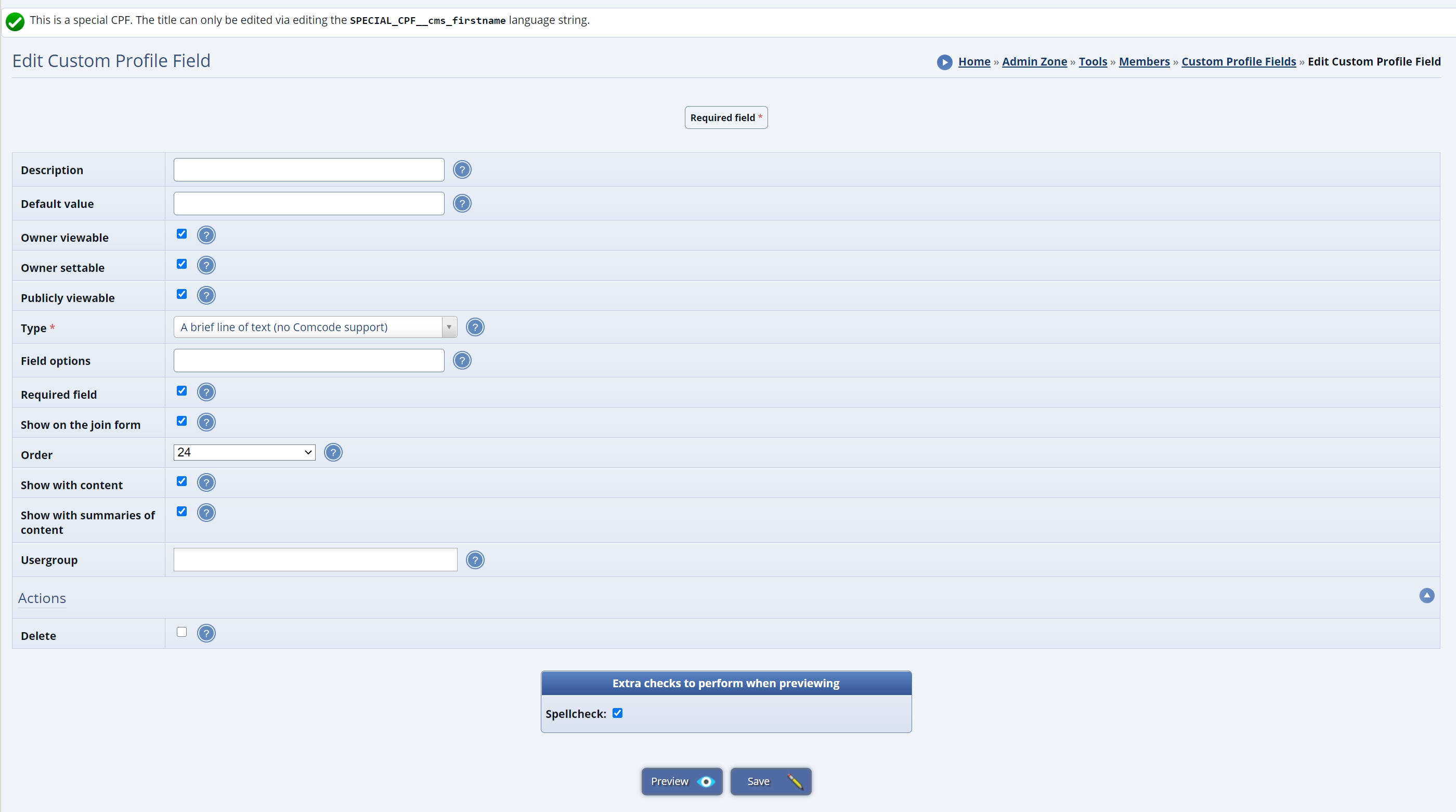 Thanks Adam! I actually already have the CPF's enabled for Firstname and Lastname. I saw the 'Display name generator' field but didn't know how to find the field ID's. So thanks for that tip! Unfortunately, when I go to Custom Profile Fields and select edit to find the field ID, I'm not seeing it. Here is a screenshot of what I am seeing: