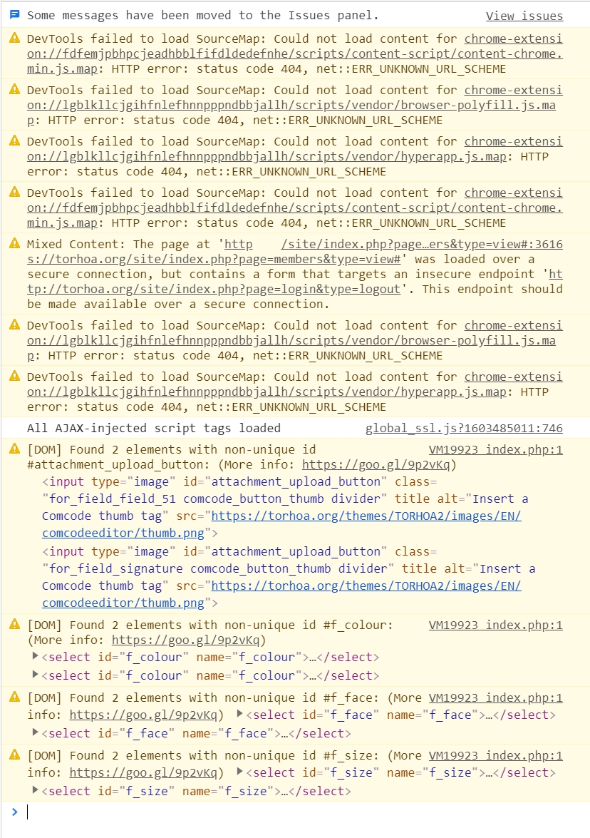 I'm not familiar with how to check the browser error console. I'm assuming it's via Tools->Developer Tools (for Chrome) and if so, this is what I was able to see: Hope this helps. Let me know if you'd like me to do more.