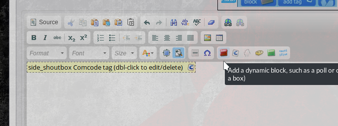 For that comcode page, go ahead and delete everything on it (the h1 tag and the childpages stuff). Then using the dynamic block assistant on the fancy WYSIWYG editor (looks like a little red box), add the "Shout Box (side_shoutbox)" item.
