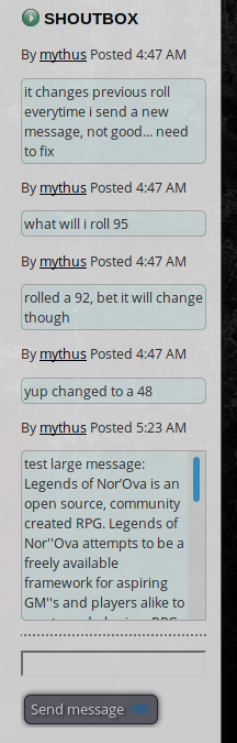 That will make the messages not so bulky. If you want your shoutbox to look like mine with the little horizontal line seperating the chatting from the chat input box, edit BLOCK_SIDE_SHOUTBOX.tpl and add the