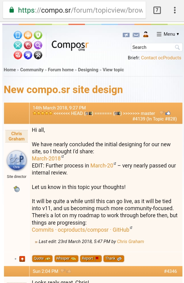 Become a fan of Composr on Facebook or add me as a friend. Add me on on Mastodon. Follow me on Minds (where I am most active). Support me on Patreon