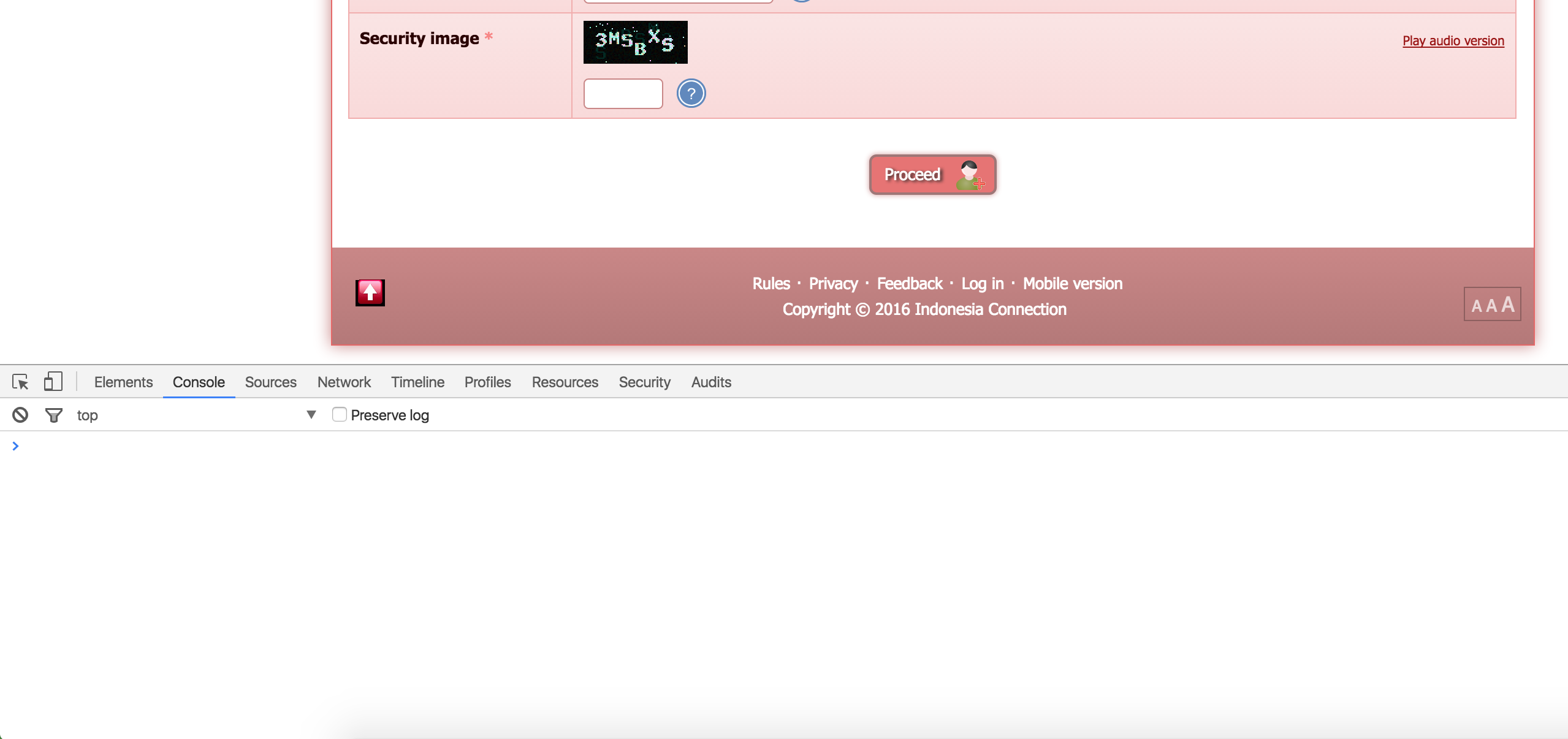 2. then after I tried to disable JavaScript CAPTCHA, I could access a security image with no problems although I have activated all extensions on my browser.