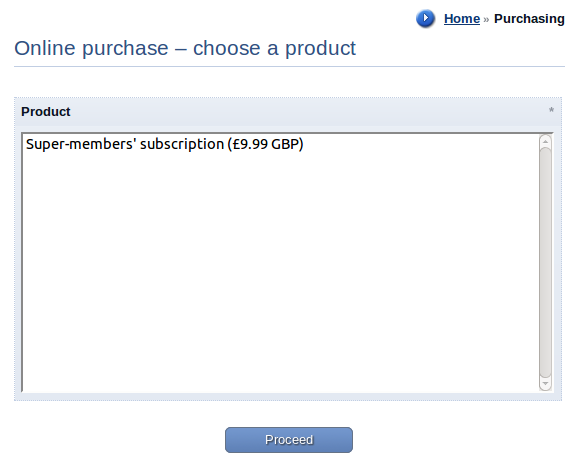 | Description | Add a usergroup subscription using PayPal, to sell access to a usergroup. Perhaps also set some privileges against that usergroup. | ||||