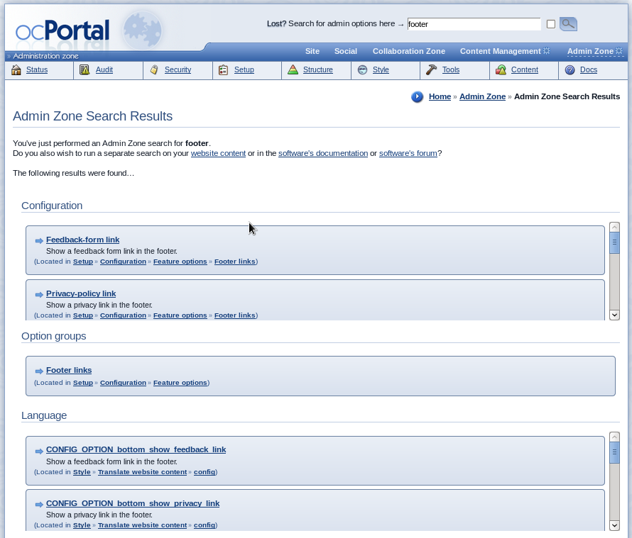 | Description | Using the Admin Zone search to find options, permissions, etc, if you only have a vague idea of what you are looking for. | ||||