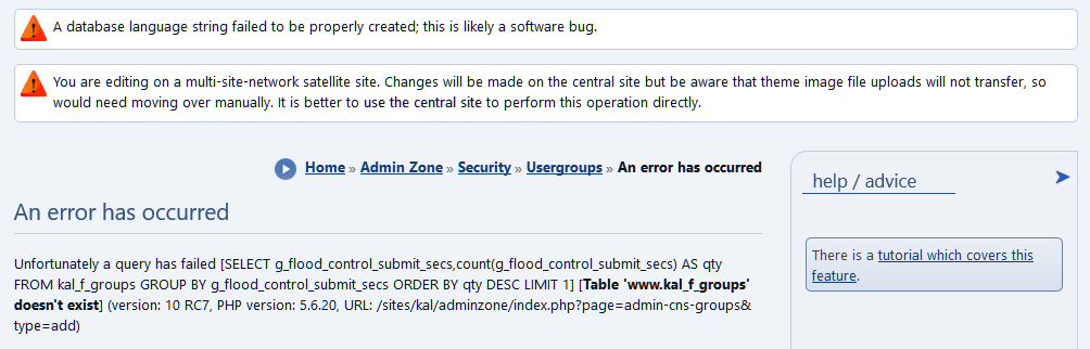 Adding a group on the main site seems to work, but when clicking edit groups to see the id, it results in the error that the group doesn't exist and has probably been deleted. Err, okay. |