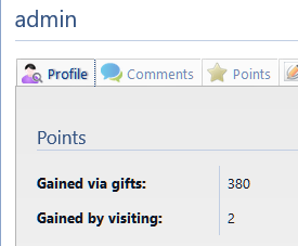 | Description | [see comments below for explanation, original bug report follows] Noticed that it says I have 380 points via gifts, when in fact this is via posting content on the site. No gift points have been given. | ||||