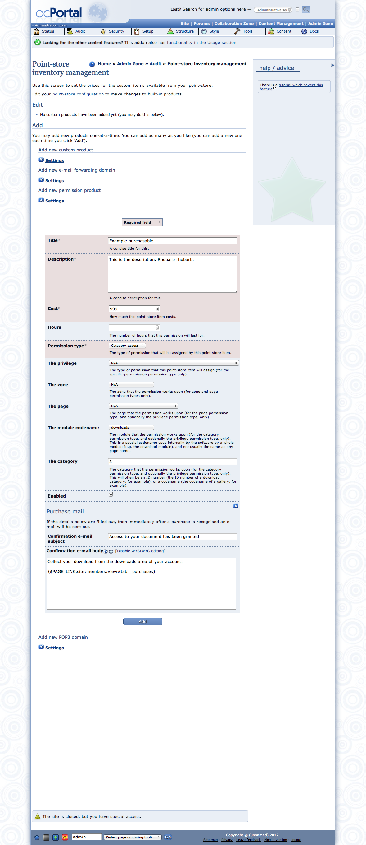 - Support for the permissions pointstore products in the eCommerce system (non-bundled addon)