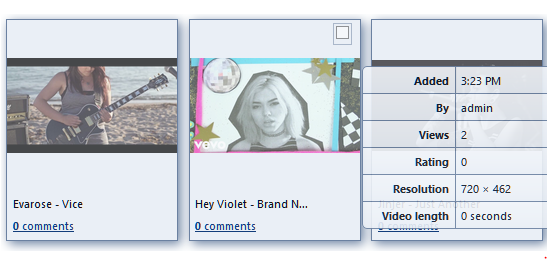 | Description | After adding some Youtube videos into a gallery, I notice that the most recent entry is missing the select option in the space above the thumbnail. Also noticed the space above the thumbnail shows in Guest view though the select option doesn't. When hovering the thumbnail, given the restrictive title length on the gallery page, it would be nice to see the title in this overlay along with the other details. | ||||