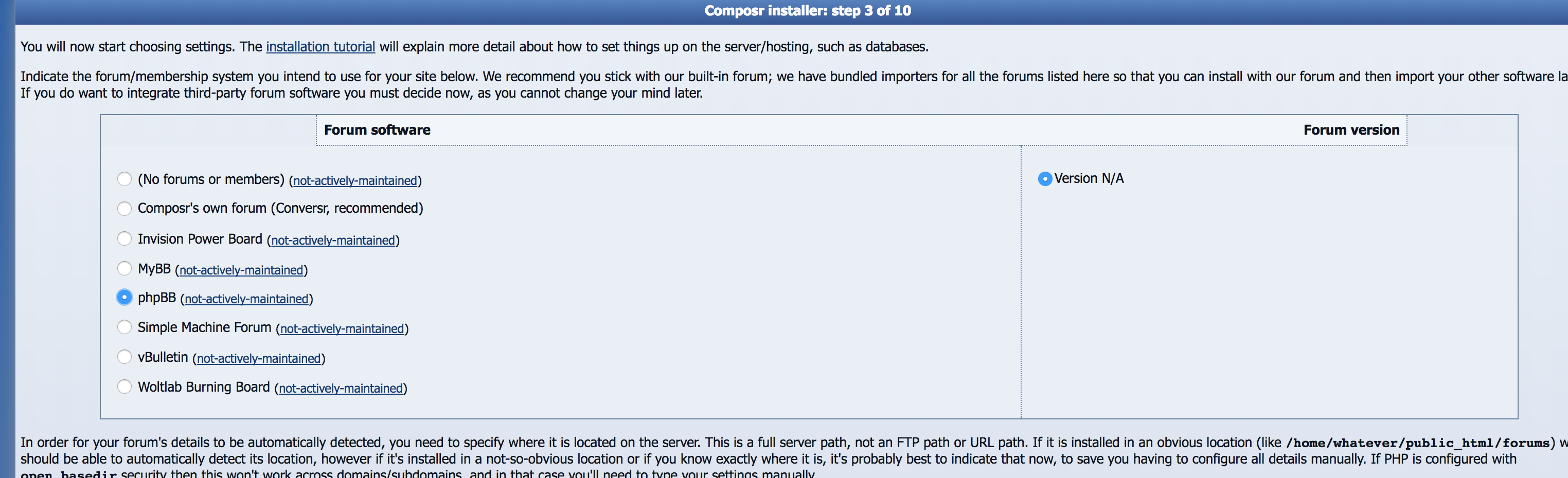 | Description | JS code should mean the list of versions should change as the forum software is selected. | ||||