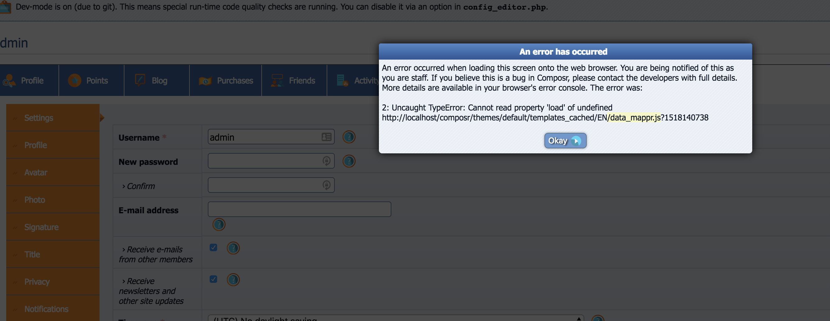| Summary | 0003534: User Mappr giving JS error | ||||