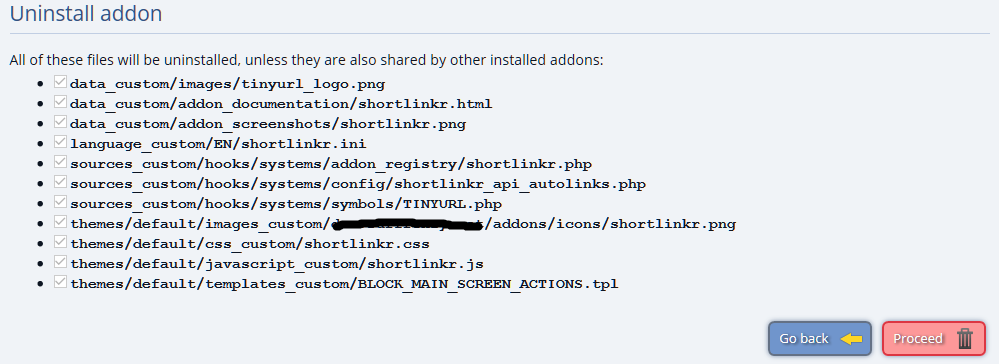 | Description | I have noticed that:- 1) When exporting addons that no config files is created and if one is included in the export the details entered no longer overwrite the existing file so it doesn't matter what you type. (Edit: I meant the addon_registry not config, and I realise the export details go in addon.inf but I am sure those details used to create/update the addon_registry file). 2) When importing, after deleting an addon and seeing all the files marked as deleted, there are some files left behind (in my case a language file and an image in data_custom). Also when installing an addon, it seems the css and js files included are not listed though they are installed and present in the addon_registry file). | ||||