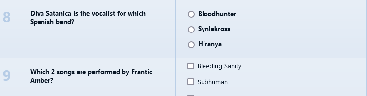 Automated response: Some ugliness in quiz layout Multiple-ticks and Radio-sets should use bold consistently. Also, 'required' star markers are not placed well when the question text wraps. |
