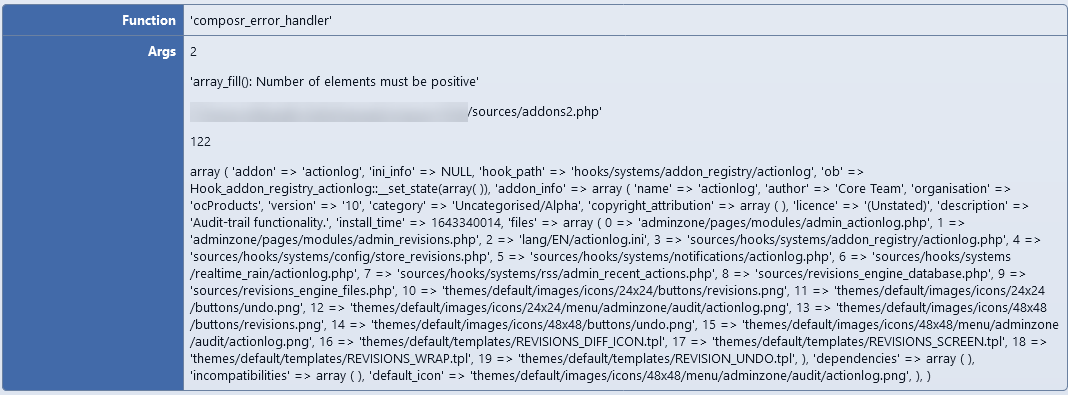 Fixed in git commit 598fde5de (https://gitlab.com/composr-foundation/composr/commit/598fde5de - link will become active once code pushed to GitLab) A hotfix (a TAR of files to upload) has been uploaded to this issue. These files are made to the latest intra-version state (i.e. may roll in earlier fixes too if made to the same files) - so only upload files newer than what you have already. If there are files in a hot-fix that you don't have then they probably relate to addons that you don't have installed and should be skipped. Always take backups of files you are replacing or keep a copy of the manual installer for your version, and only apply fixes you need. These hotfixes are not necessarily reliable or well supported. Not sure how to extract TAR files to your Windows computer? Try 7-zip (http://www.7-zip.org/). hotfix-4811, 2022-01-28 4pm.tar (53,248 bytes) |