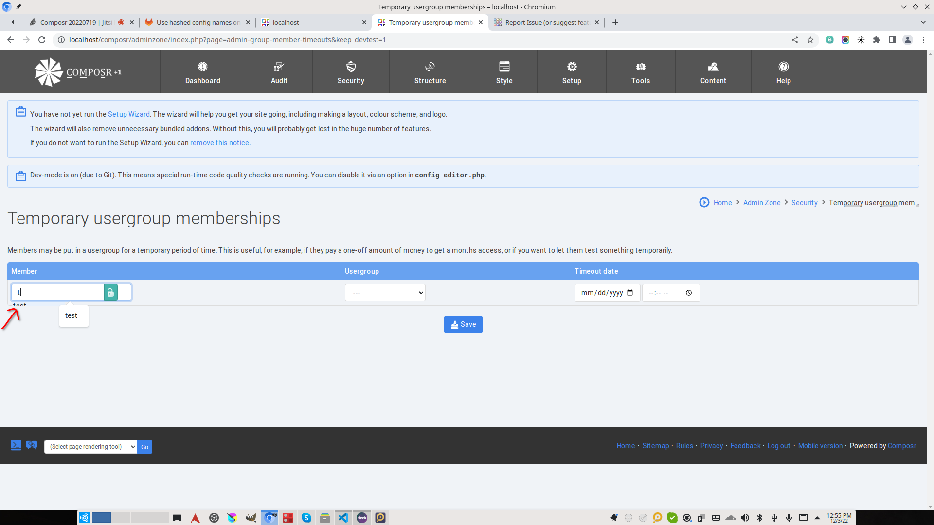 | Description | On admin-group-member-timeouts (Temporary usergroup subscriptions), when no subscriptions are active (there is only one item in the table for creating a new temporary subscription), the username select box gets cut off by the bottom of the table. This does not happen when there is at least one entry present; the select box properly extends on top of / beyond the bottom of the table. | ||||