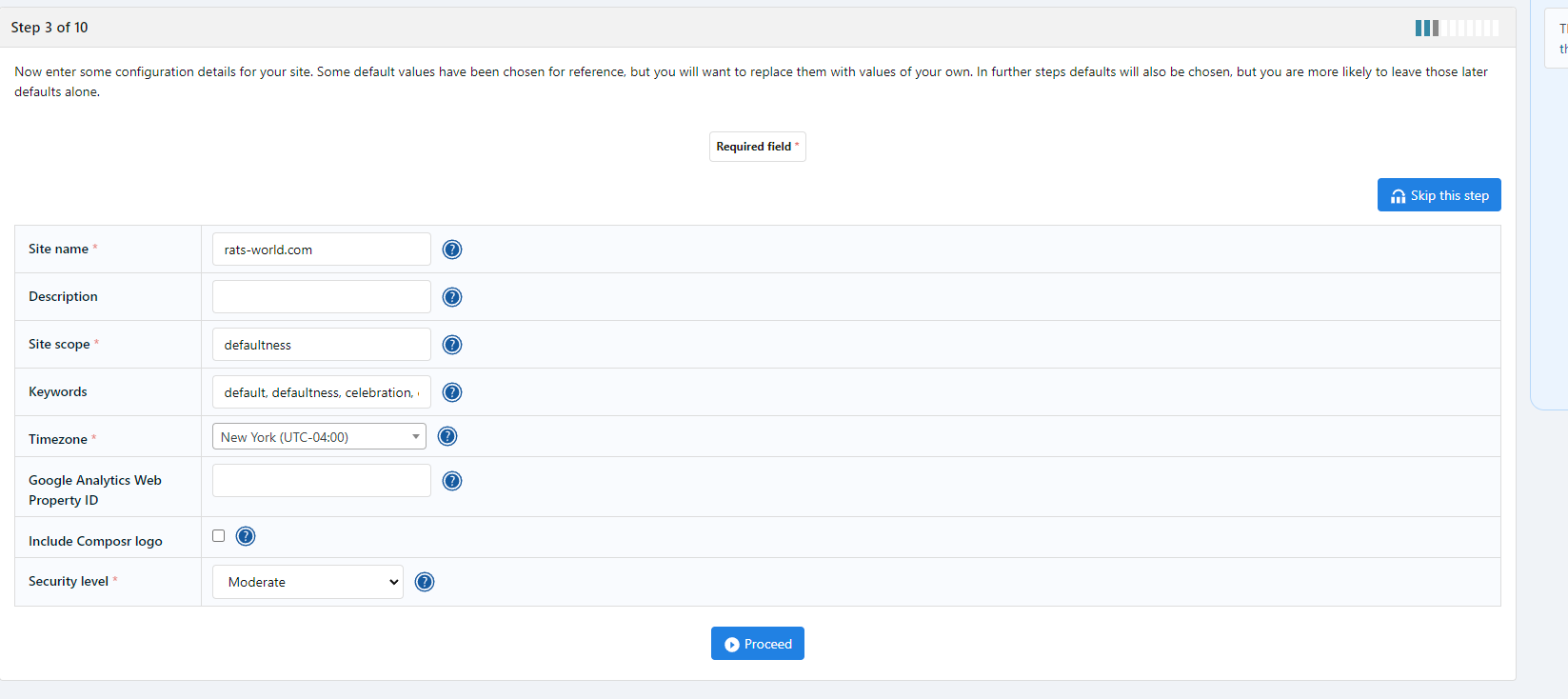 DescriptionEntered all information for site and connections and when I got to configuration after install it stalled at step 3