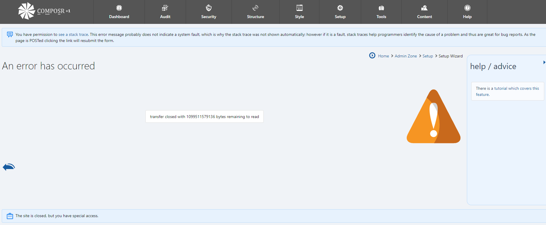 This is a known issue. I cut you some slack because you probably don't know what's happening here. The setup wizard was attempting to download the Facebook Support non-bundled addon from the new composr.app server. Unfortunately, I've been experiencing many issues with connections prematurely closing when trying to download non-bundled addons. I have not yet been able to identify the issue, but I do know it's server-end on composr.app, not Composr itself.