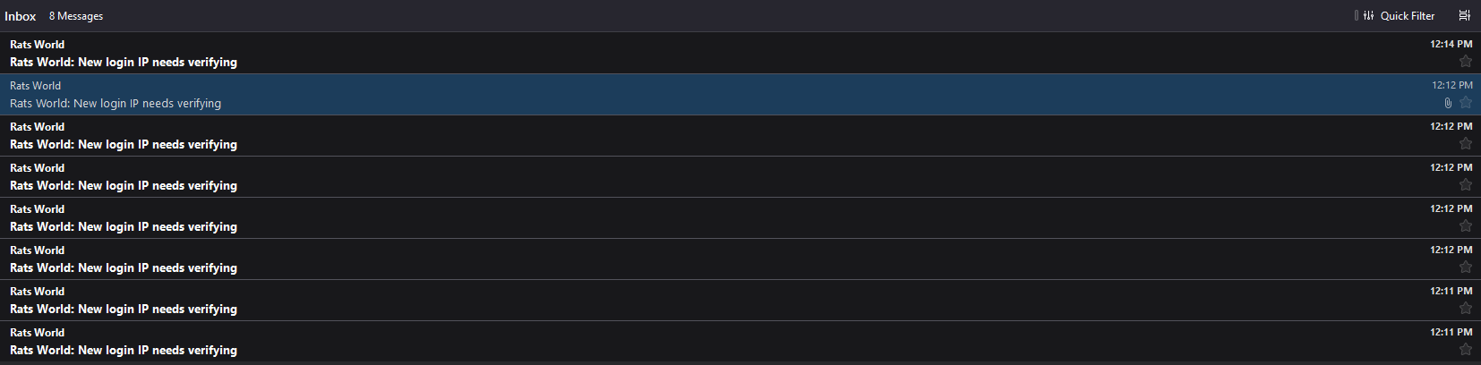 Can you share a screenshot of your email log? I'd like to see what all these emails are so I can figure out what's going on. Thank you! |