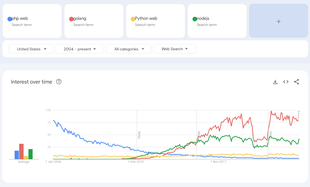 | Description | This is going to be a controversial and perhaps pie-in-the-sky issue. However, I think it needs bringing up. PHP has been in decline for a long time. It is still the standard for hosting out-of-the-box web applications, but people increasingly are not using out-of-the-box web applications, and instead either hiring developers to make things using components or using some kind of SaaS solution. And such developers/systems are rarely using PHP nowadays. PHP has popular frameworks, particularly Laravel and Symfony, but the popularity is nothing like what now exists around other programming languages. See attached graph that shows the decline of PHP, compared to the rise in Node and Go. It was hard to be scientific about this, as search terms specific enough to narrow down to webapp development were not indexed enough to give statistically significant results. Regardless, you can see clear trend lines. I looked at a number of programming languages: - Go. Popular for web development (and here's a framework: https://github.com/ankorstore/yokai). Down-side is it is compiled and linked, so I think users would struggle to use it for Composr sites due to the extensive toolchain that would be needed to recompile and redeploy any application updates. - Python. This is actually mostly being used for scientific and AI stuff, rather than web development. You can see the trend line is quite flat. - Ruby. This had only a relatively short time in the spotlight, and people migrated to Node due to the similarity. - Typescript. This is where the industry is gone. If we would switch to a JS-world thing, I'd want us to switch to the best which would be Typescript on Deno, as opposed to Javascript on Node. Deno is the successor to Node, written by the same guy originally. In fact, when I was interviewing for jobs last year at least two of my interviews involved companies who were migrating from PHP to Deno and/or Node. Note on Deno if a source file is changed you do need to restart the web server, unlike PHP. A big downside of Javascript/Typescript is the language is just as messy as PHP, so we would not be gaining a lot technically - in fact, there's no core function library like PHP has, so you introduce a "dependency hell" situation. - Kotlin. I always considered the idea of switching Composr to Java, but it never quite made sense. Kotlin is a more modern alternative that runs on the JVM. But it is not winning when it comes to web development. Unlike Go, compilation doesn't involve a linker, so dynamically changing files wouldn't be as hard - would still require a dev toolchain on production servers though, and the need for automatic recompiles and reboots - definitely not ideal. - Rust. Mostly being used for system programming, and would be an uphill struggle with all the problems of Go. Even though I like the idea of us using such a nice modern language. Typescript/Deno is the clear winner. Not only is it now the dominant tool for webapp development, it also would be the most practical for us. While it does have "dependency hell", so does everything else except PHP and possibly Kotlin. For all this to work we'd obviously have to automatically port our code to Typescript and make a whole lot of changes. And it would be extremely disruptive. And we'd risk dependency hell and possible performance problems. So for that reason most likely it would never happen. You may ask then, why even bring this up? Well, the concern is that eventually the PHP core development might grind to a halt. PHP salaries, generally speaking, are terrible compared to other programming salaries, and there's not a lot of incentive for people to invest themselves in PHP. So at some point it may actually become the practical thing for us to switch, especially if porting tools improve, and Deno got some kind of competitive core library. | ||||
