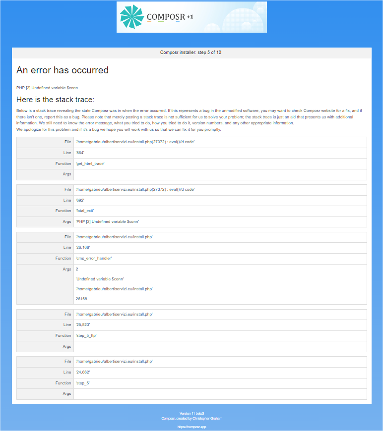 | Description | I tried to install, but it gives an error at step 5. The test was done with PHP 8.1 | ||||